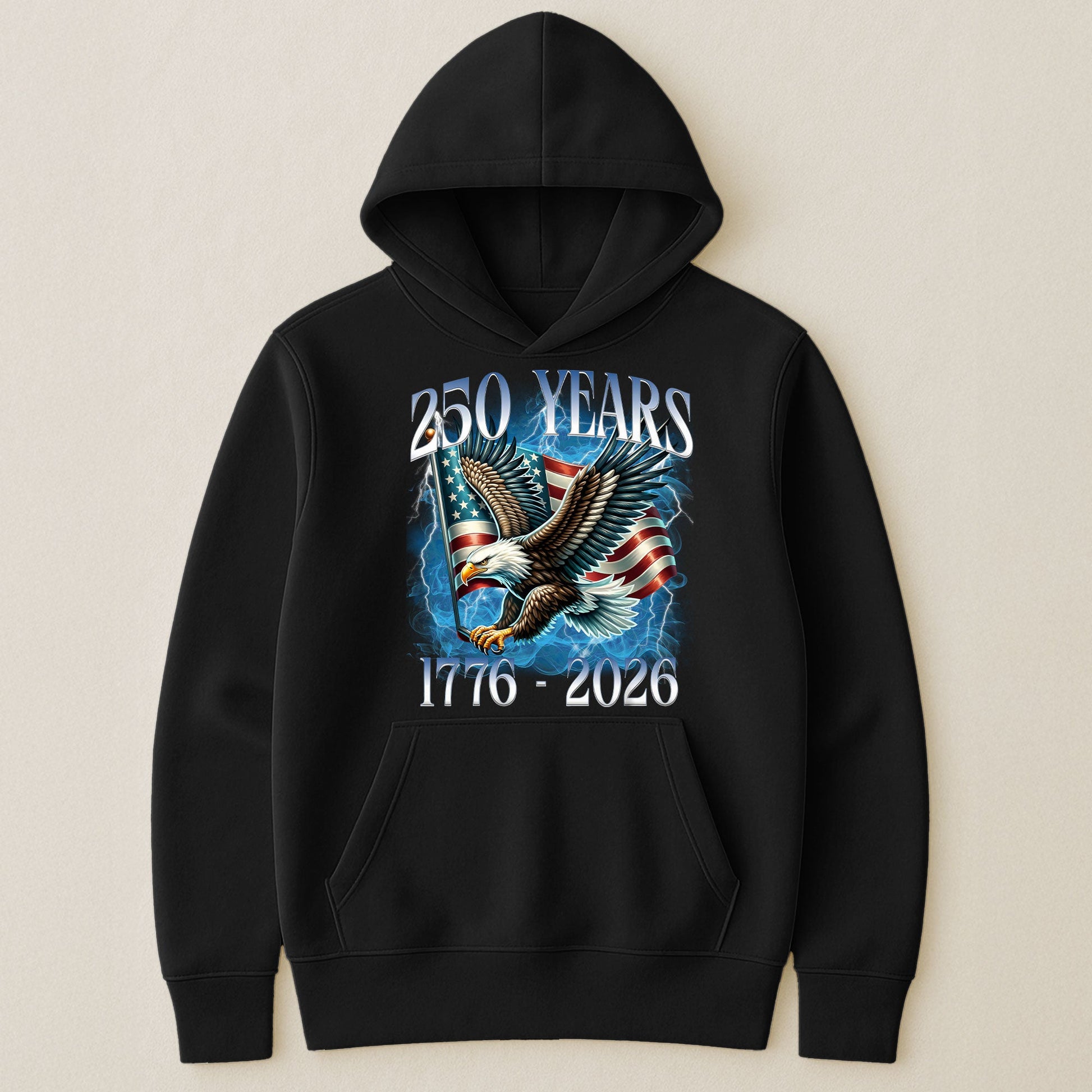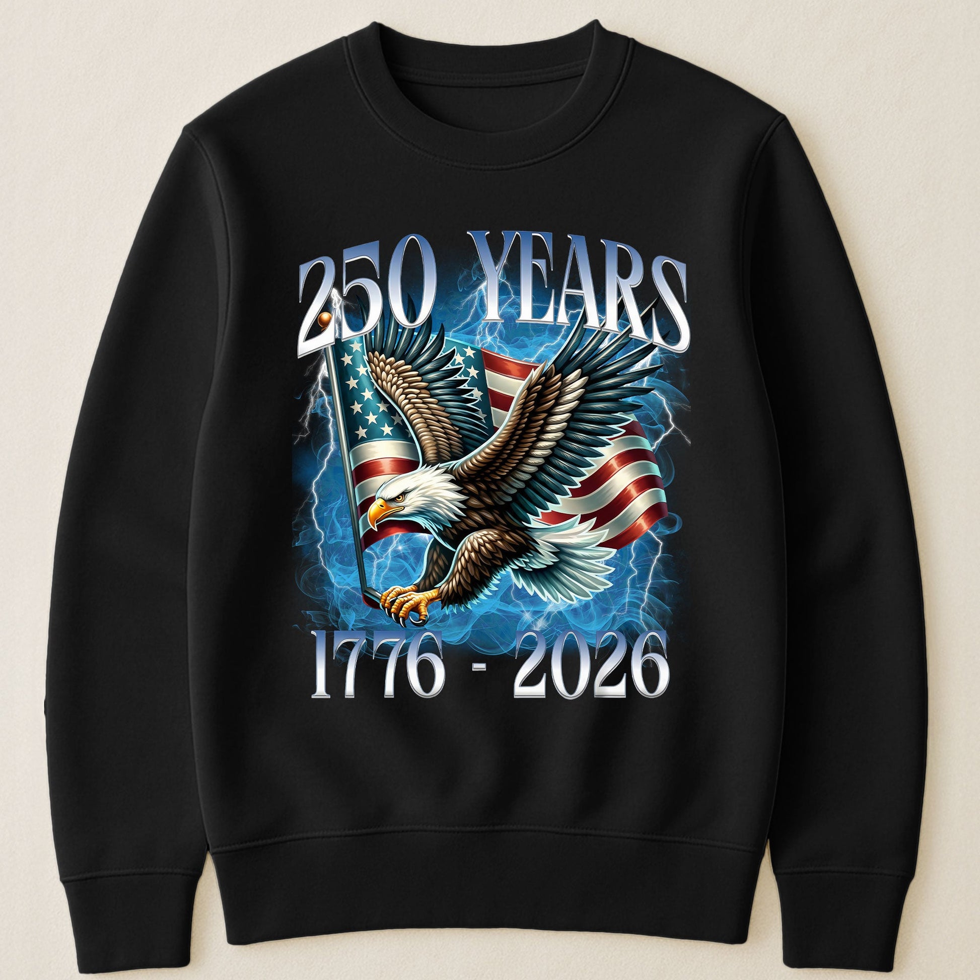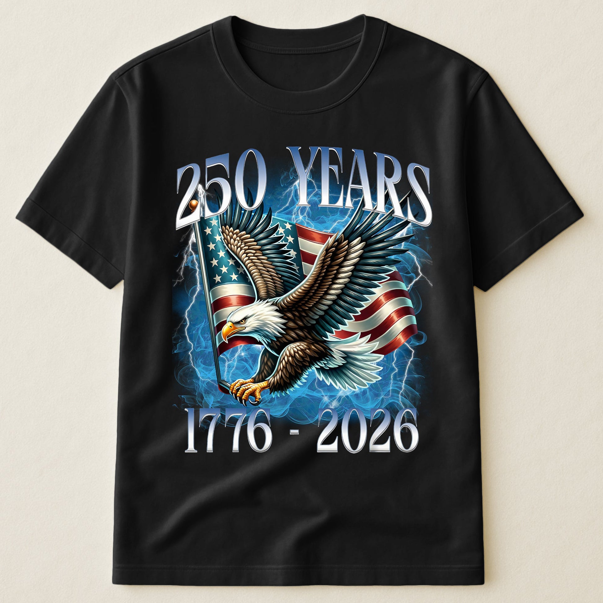 Additionally, our shirt carries an enigmatic message to ignite conversation and intrigue. It serves as a constant reminder of our shared history and aspirations. This shirt is best enjoyed when worn during gatherings and events, where its striking design and subtle message can be appreciated by all. Whether it's for yourself or a fellow patriot in your life, this shirt is sure to leave a memorable mark. Don't just wear a shirt, make a statement. Order your "250 Years Eagle & Lightning - Shirt" today and stand out from the crowd.