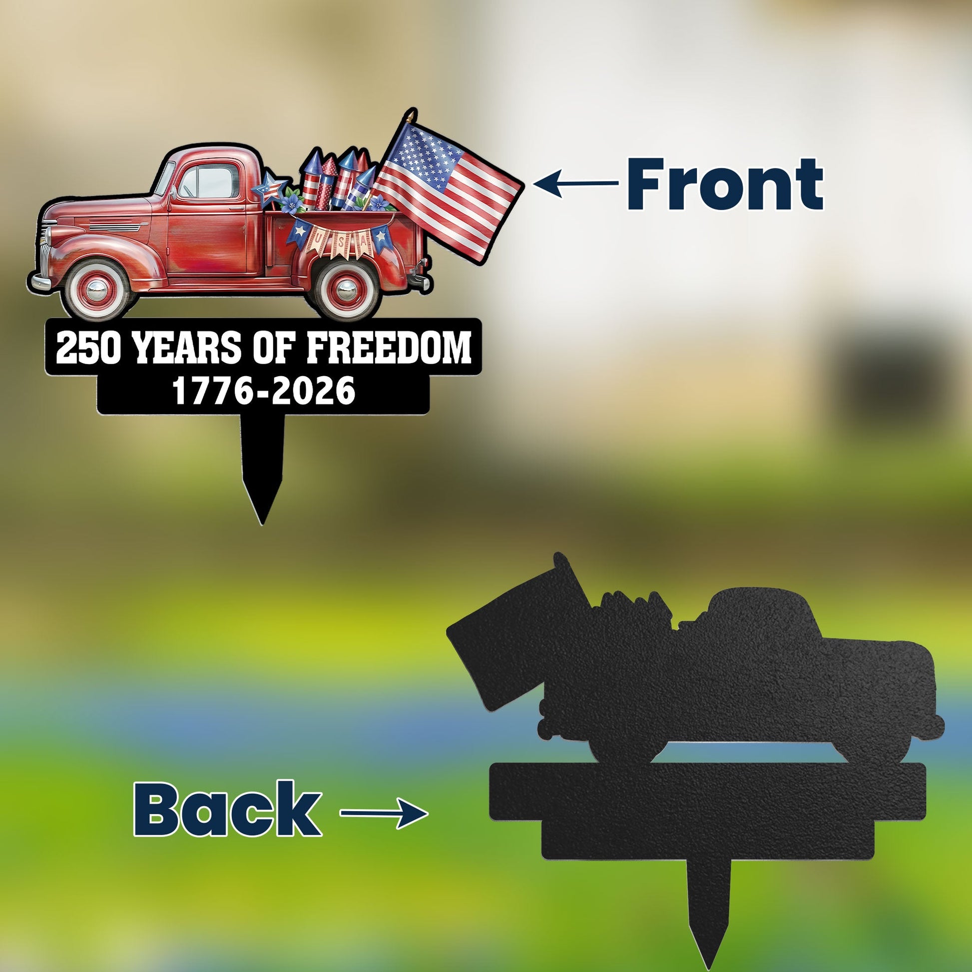 250 Years Of Freedom Red Truck Tractor Garden Decor - Personalized Garden Stake