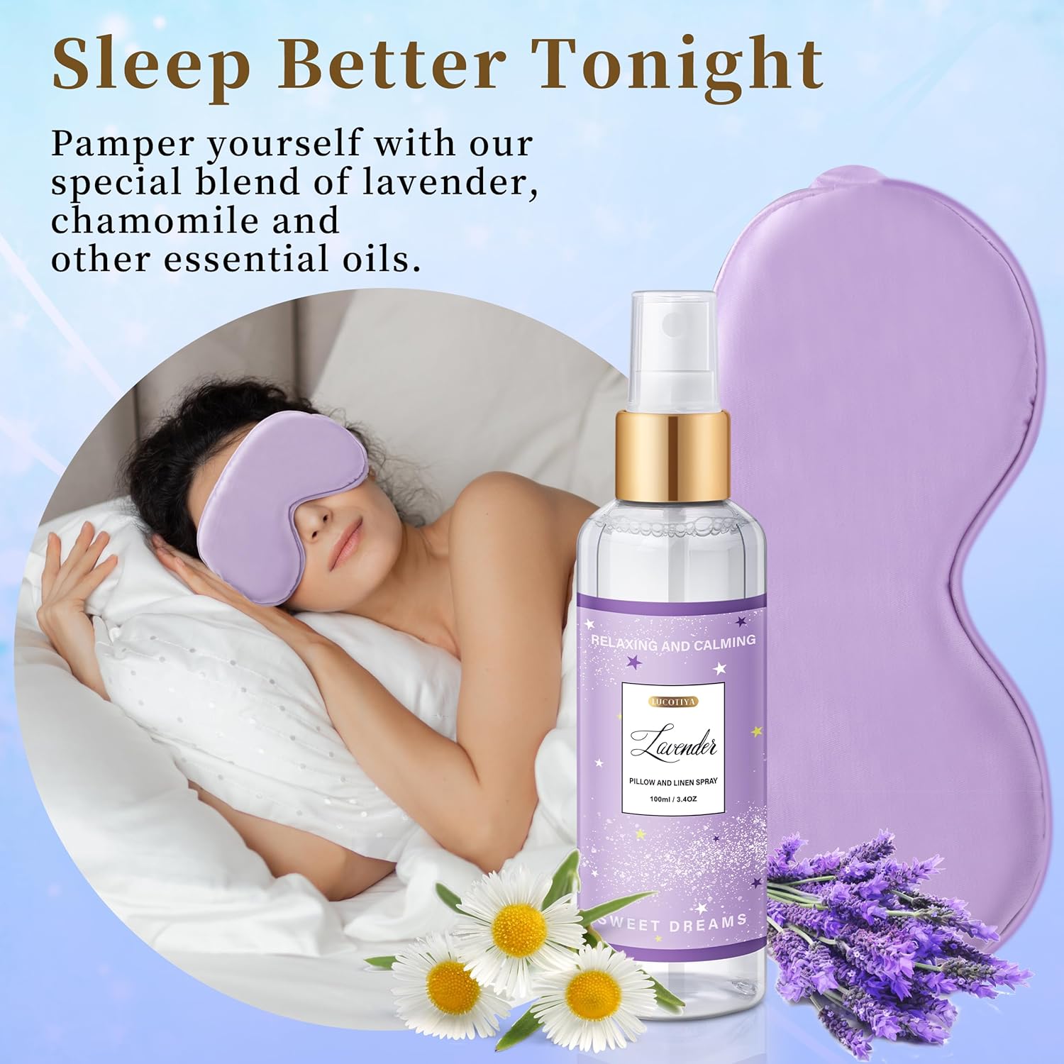 - Pillow Spray & Candle: Fill the air with lavender’s soothing scent to promote relaxation and better sleep.