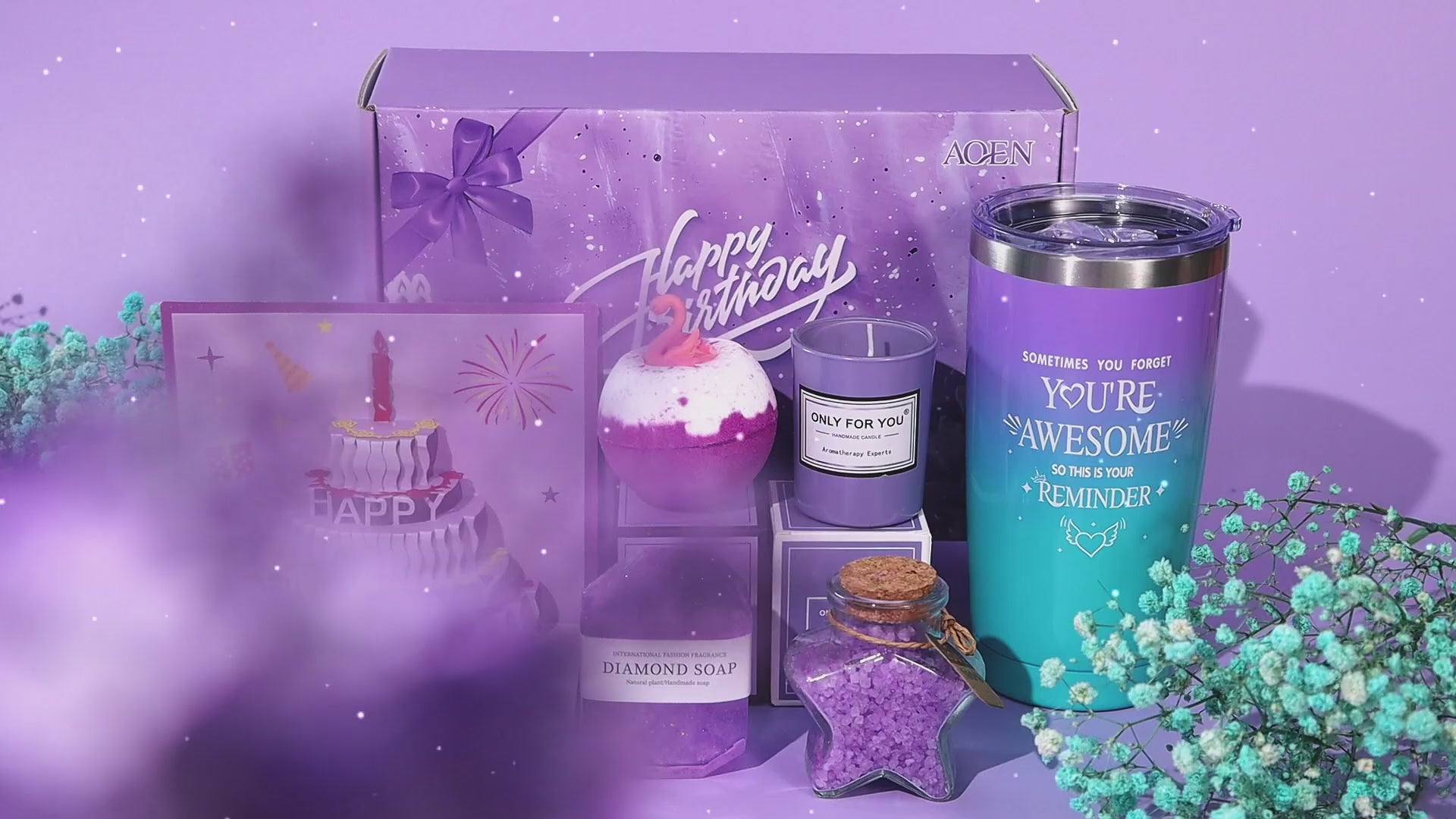 Aoen Purple Spa Gift Set – 7 - Piece Unique Birthday & Holiday Present for Best Friends, Mom & Coworkers