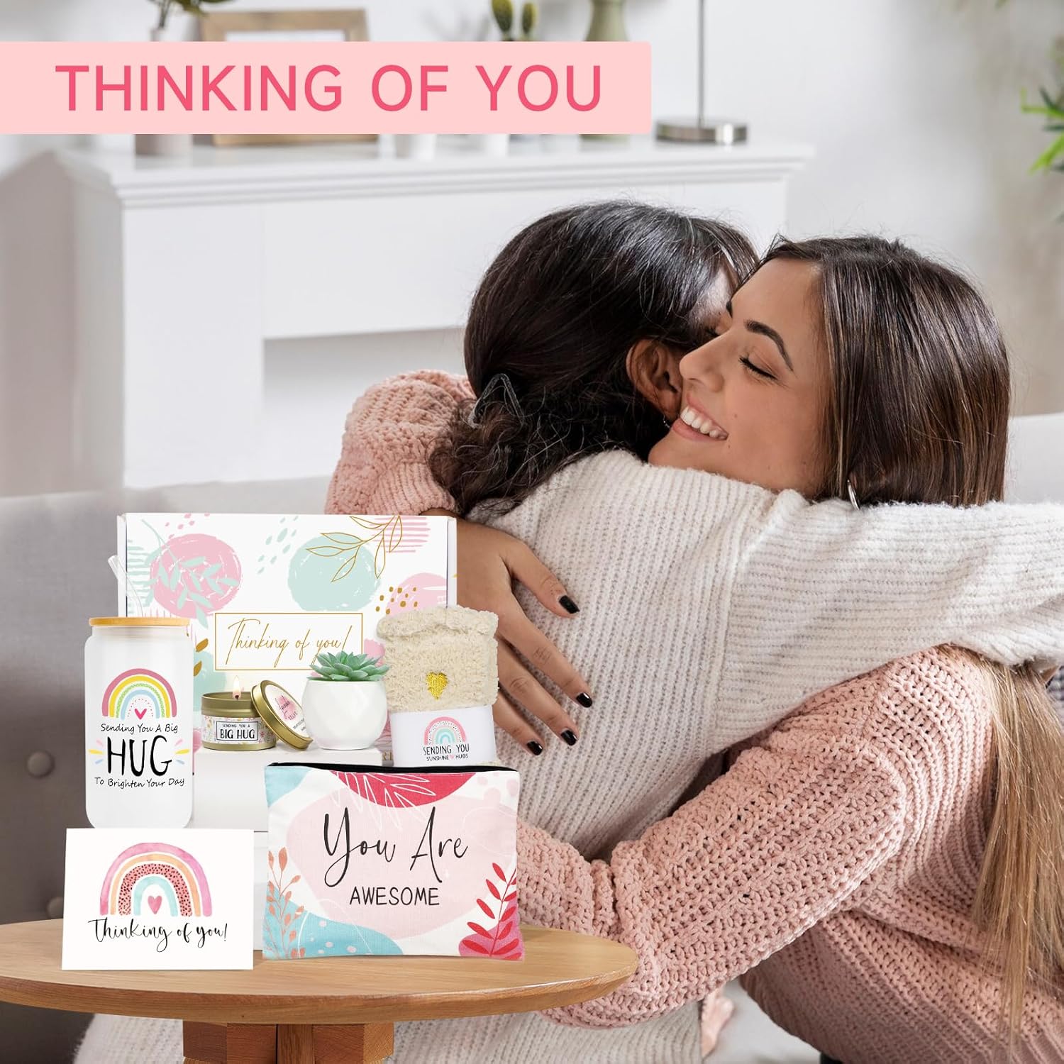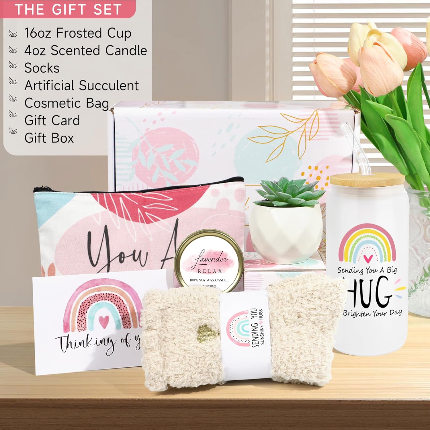 - 6-Piece Healing Collection: Includes 16oz borosilicate glass, lavender soy candle, fuzzy socks, artificial succulent, “You Are Awesome” cosmetic bag, and sympathy card—all presented in a reusable gift box.