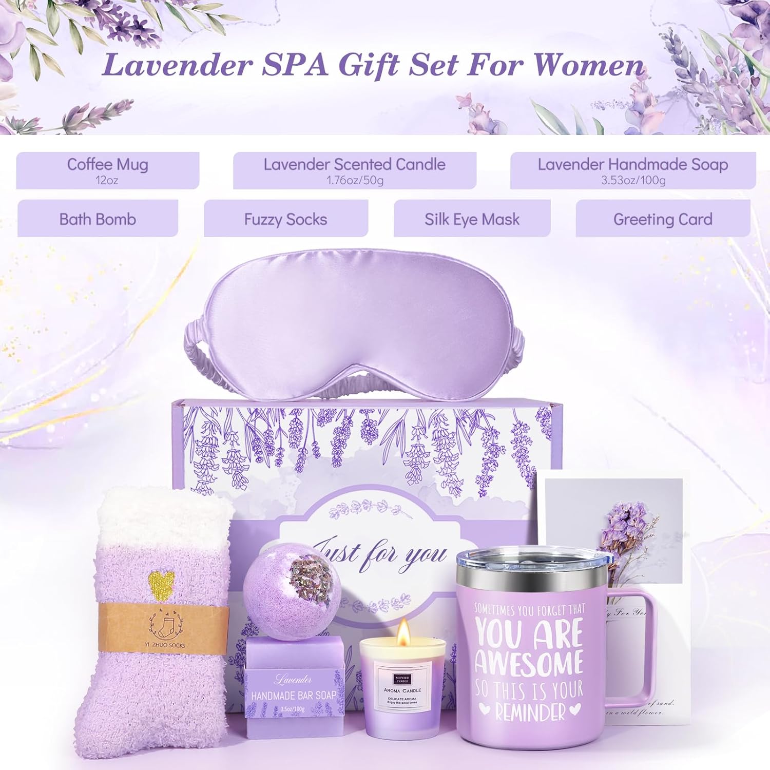 Lavender Spa Set - Bday & Mom’s Day Gifts for Her (Purple, Mom, Wife, Sister)