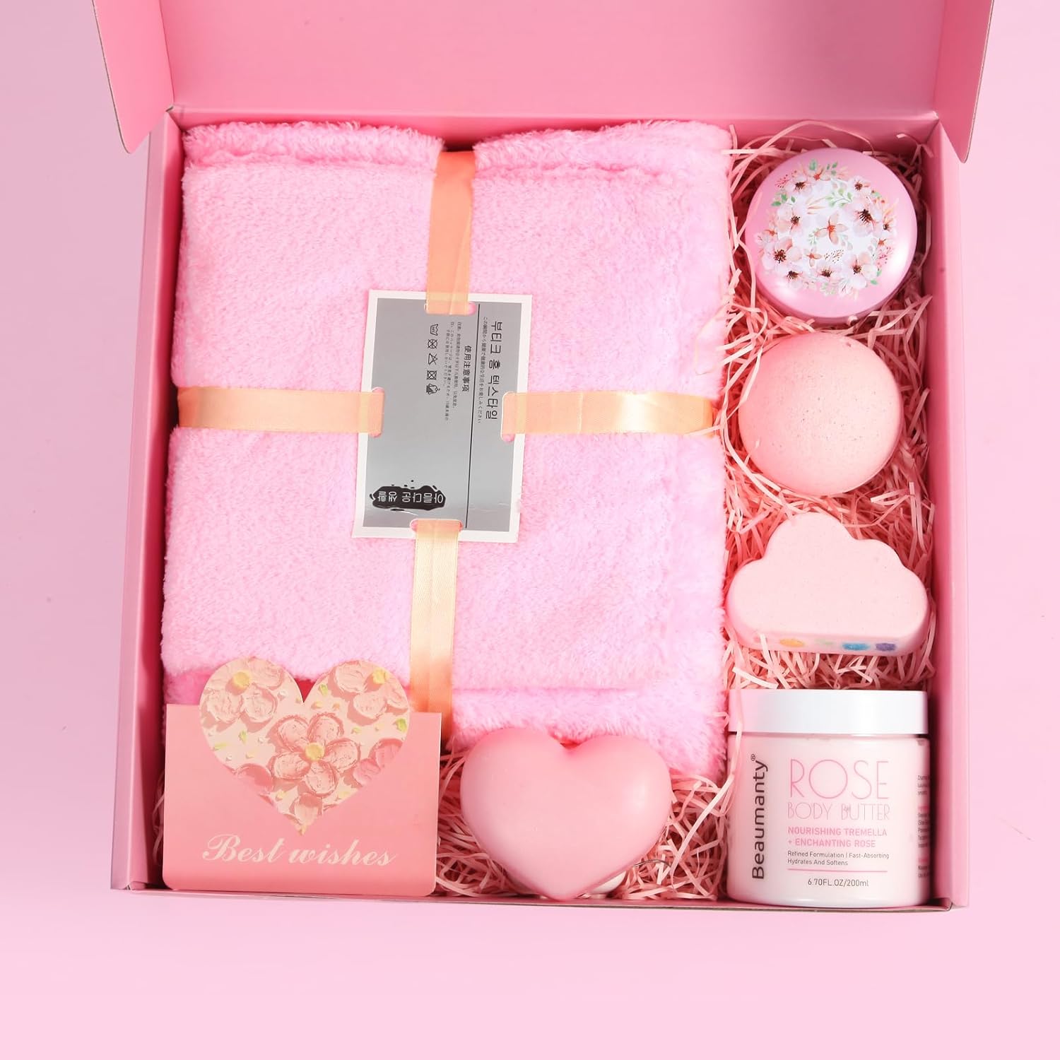 - Luxury Bath Set: Includes bath salts, shower gel, and a loofah, all cruelty-free.